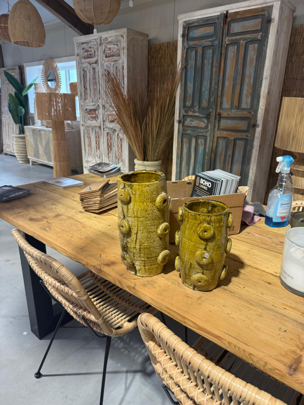 Grote Geglazuurde Vaas in Zeegroen, Ibiza Bohemian Stijl